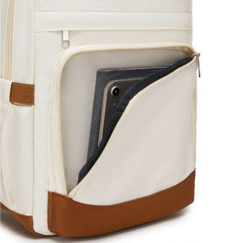 BPK2502 - Kono Casual Contemporary Backpack with Laptop Sleeve & Padded Straps for Daily Commute - Cream and Brown