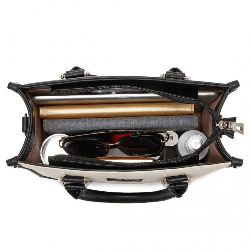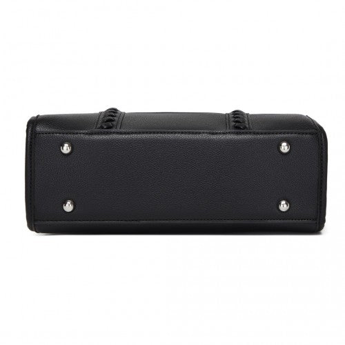 HBM2462 - Miss Lulu PU Leather Graceful Spacious Tote Bag with Woven Trim and Detachable Ethnic Strap - Black