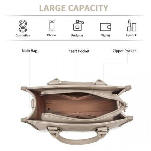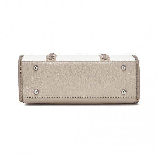 HBM2462 - Miss Lulu PU Leather Graceful Spacious Tote Bag with Woven Trim and Detachable Ethnic Strap - Khaki
