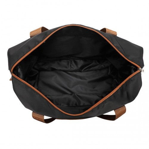 The travel bag set is made of waterproof nylon fabric with polyester interior.