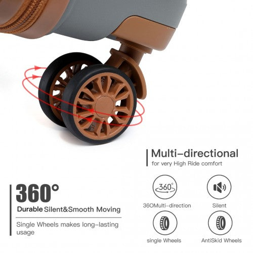 K2094L - Kono 24 Inch Lightweight Polypropylene Hard Shell Suitcase With TSA Lock - Grey And Brown