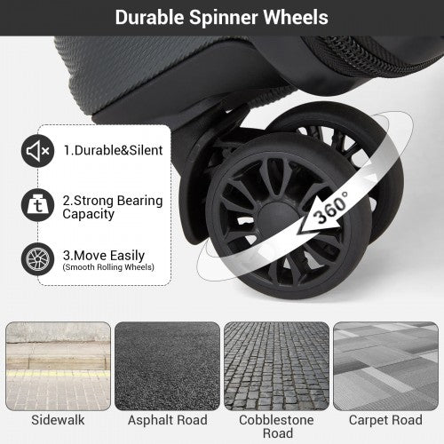 KSK2596 - Kono 16 Inch ABS Hard Shell Under-Seat Cabin Suitcase with Spinner Wheels - Grey