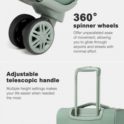 KSN2593 - 20 inch Women's Lightweight Softshell Suitcase with Spinner Wheels and Spacious Compartments - Green